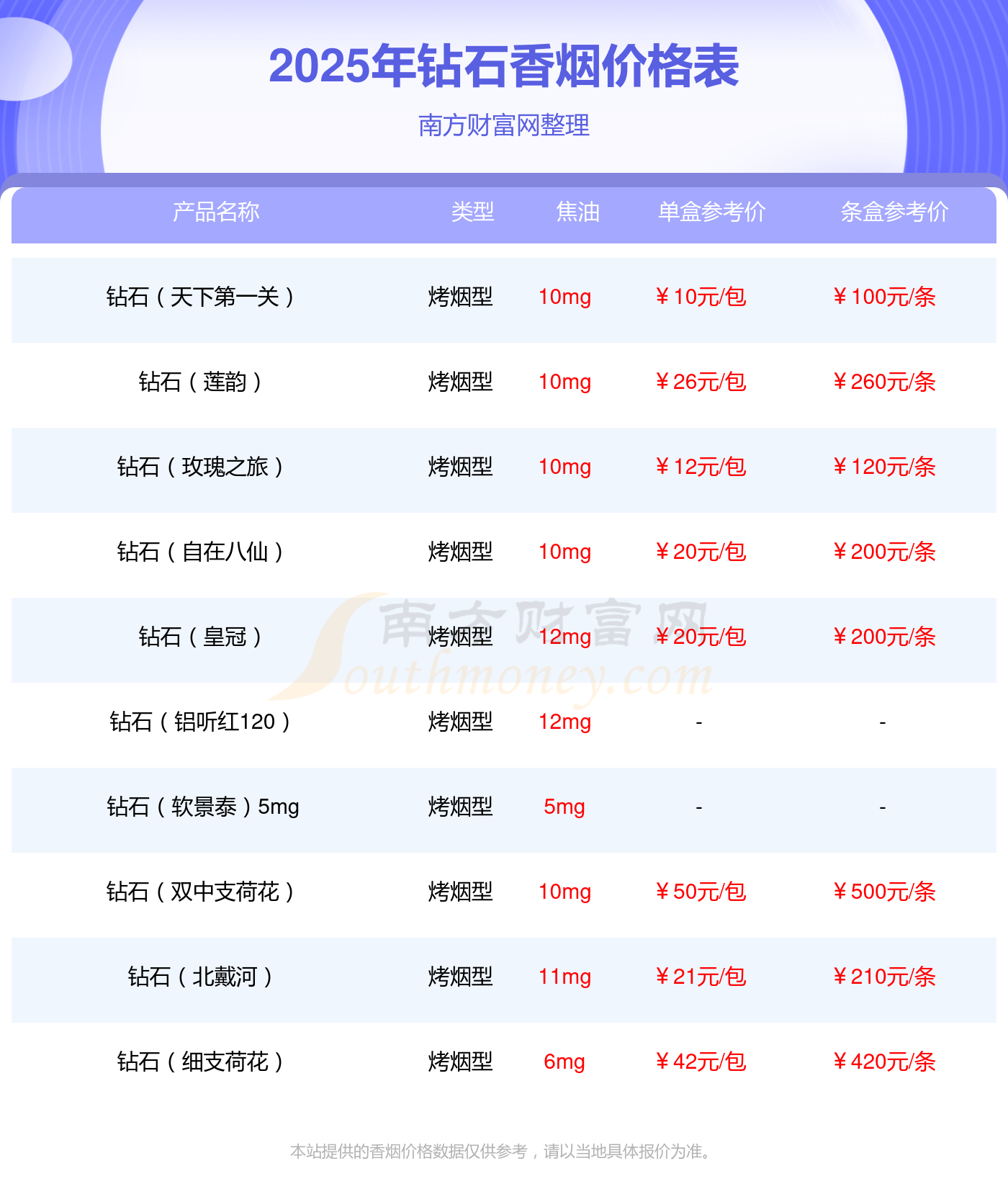 以上香煙價(jià)格相關(guān)數(shù)據(jù)僅供參考,溫馨提示,吸煙有害健康。