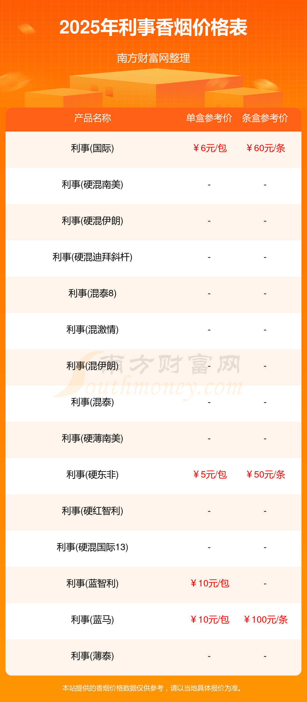 利事香煙多少一盒_利事香煙價格合集(2025)