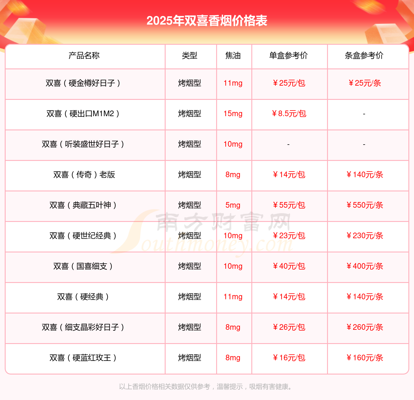 雙喜(硬祥云好日子)香煙價(jià)格表2025基本信息一覽