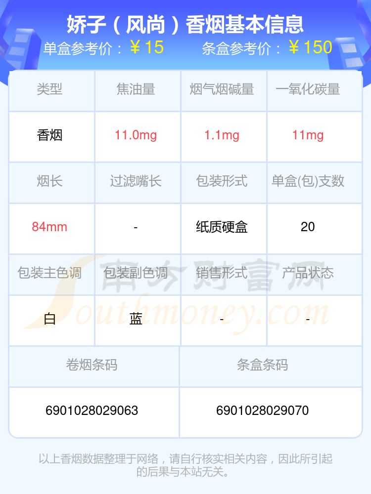 嬌子(風(fēng)尚)單盒參考價(jià):15元