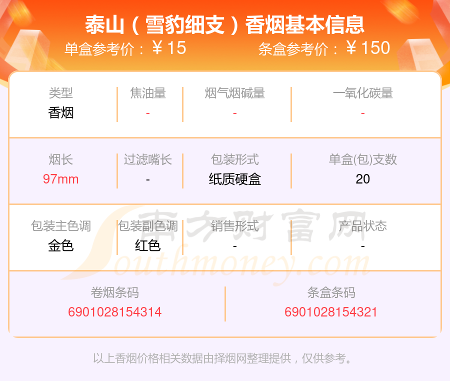 泰山(雪豹細(xì)支)條盒參考價(jià):150元
