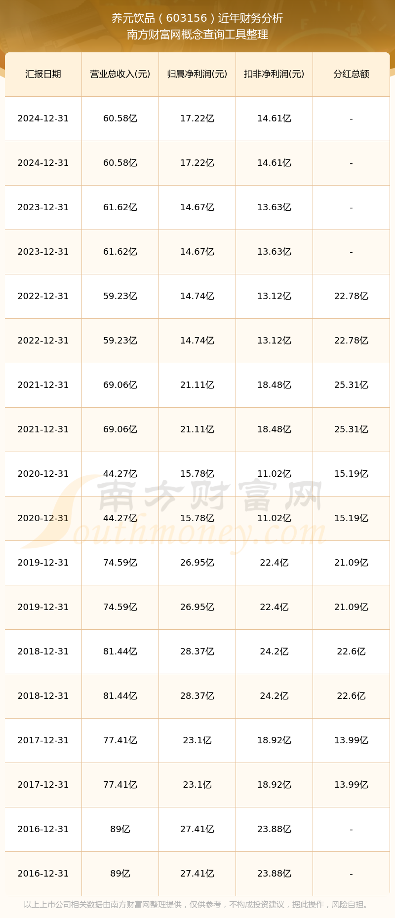 養(yǎng)元飲品歷年分紅派息情況如下表所示: