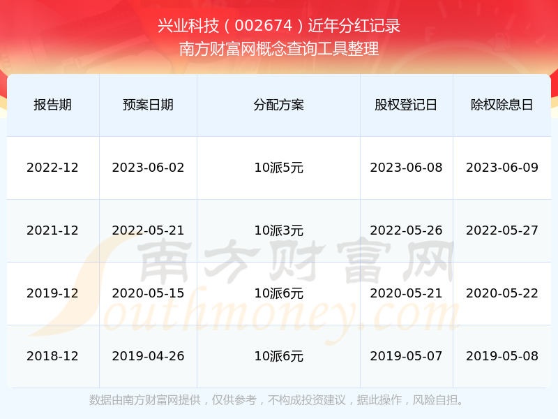 興業(yè)科技最新一次公布的分紅方案為10派5元。本次權益分派股權登記日為2023年6月8日,除權除息日為2023年6月9日,派息日為2023年6月9日。