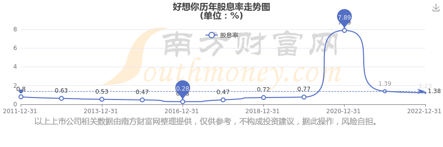 近年好想你年度股息率走勢(shì)如下圖: