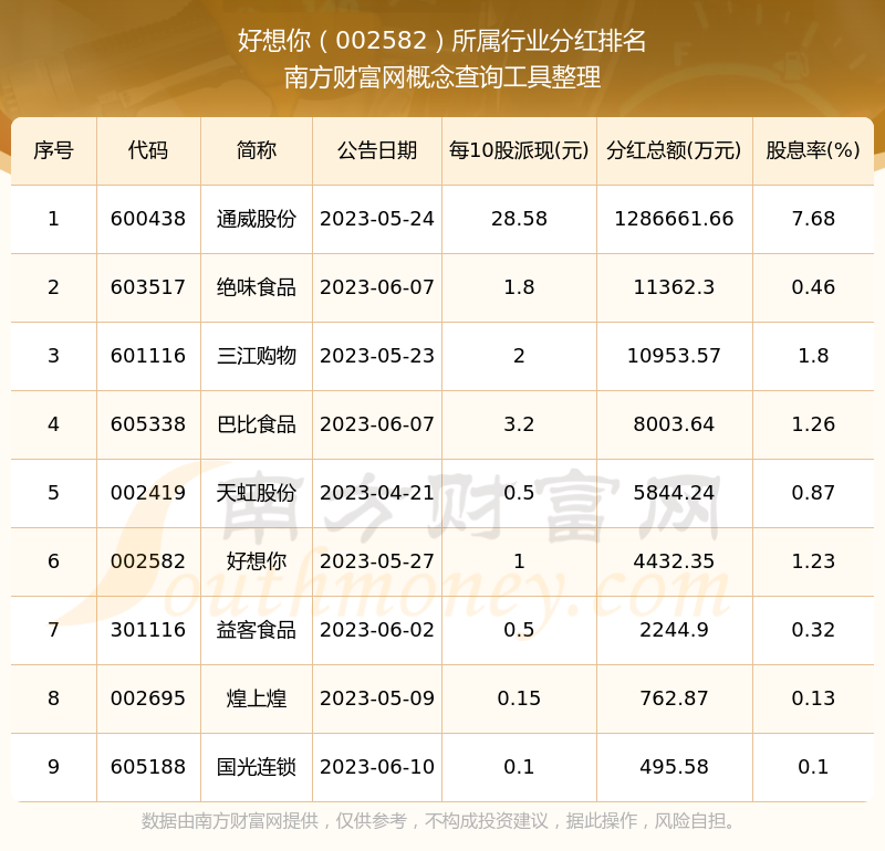 二、好想你002582行業(yè)分紅排名