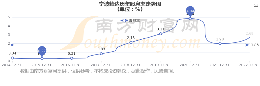 近年寧波精達(dá)年度股息率走勢(shì)如下圖: