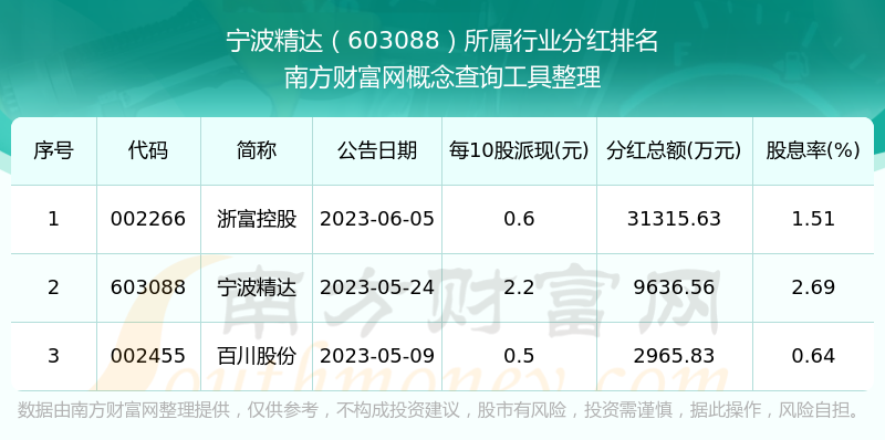 二、寧波精達(dá)603088行業(yè)分紅排名