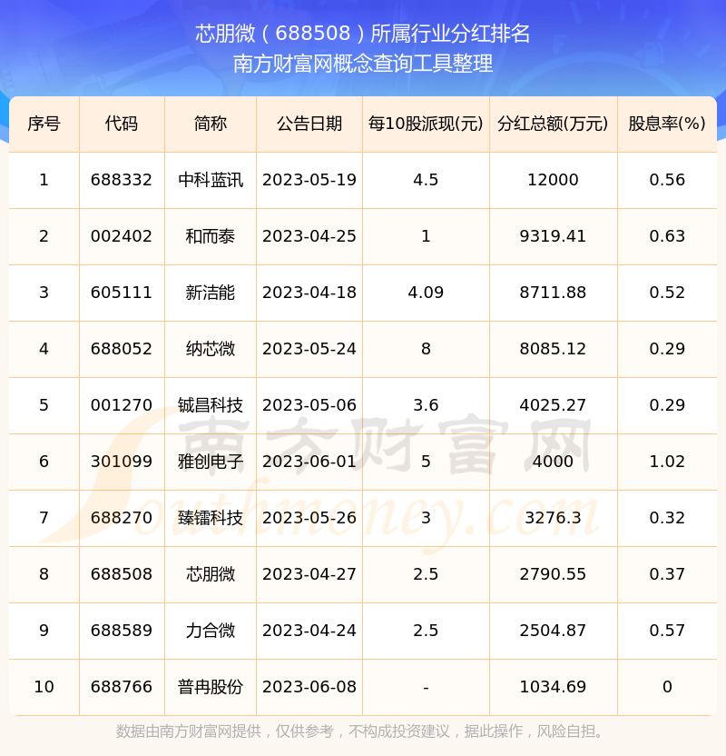 二、芯朋微688508行業(yè)分紅排名