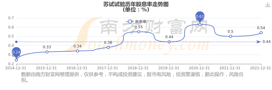 蘇試試驗(yàn)歷年股息率走勢如下圖: