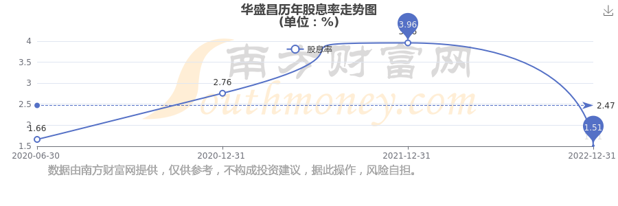 近年華盛昌年度股息率走勢(shì)如下圖: