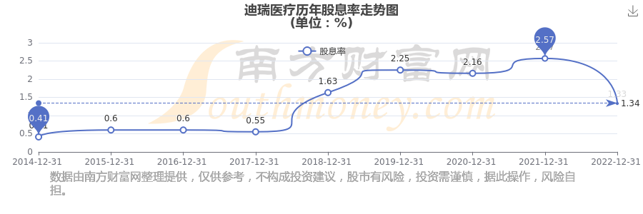 迪瑞醫(yī)療歷年股息率走勢(shì)如下圖: