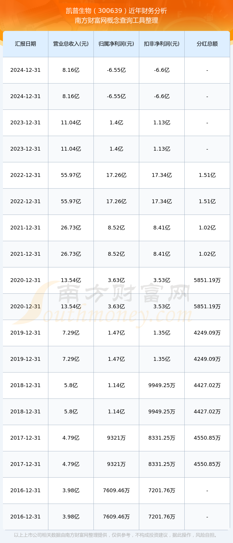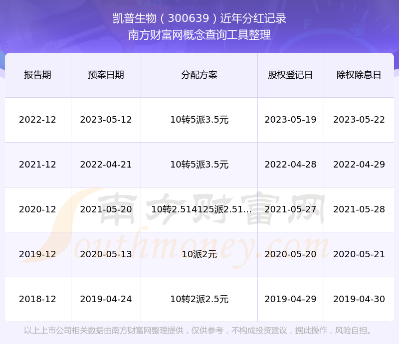 近年凱普生物分紅派息情況如下表所示: