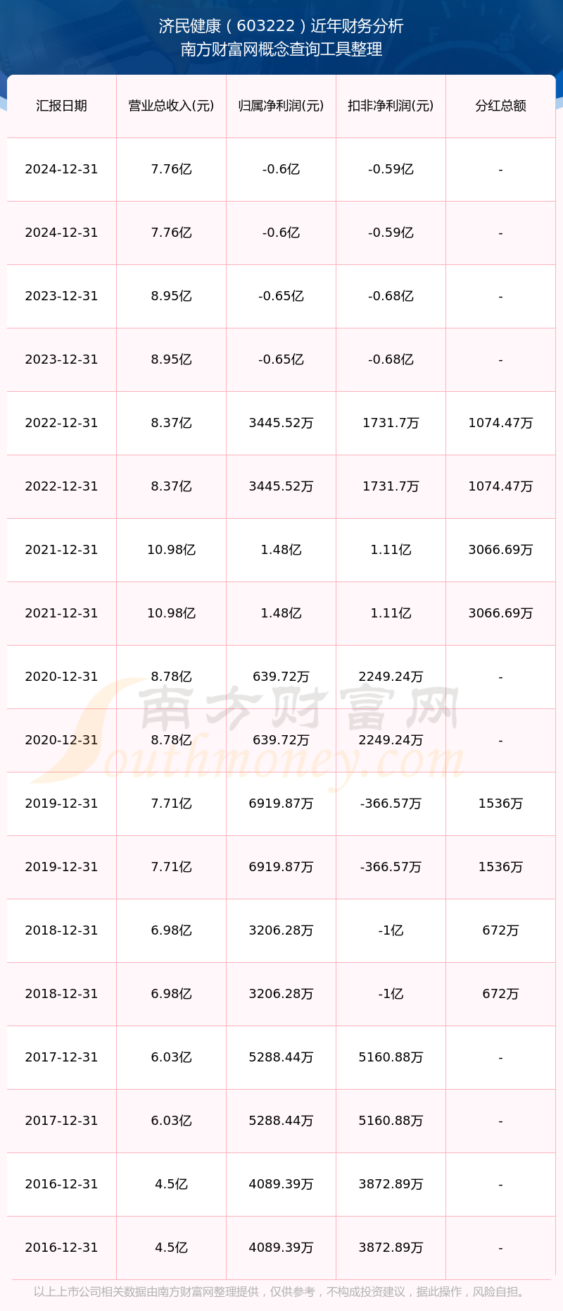 近年濟(jì)民健康分紅派息情況如下表所示: