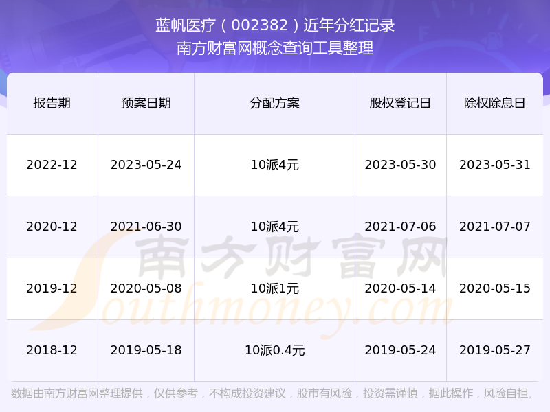 藍帆醫(yī)療最新一次公布的分紅方案:10派4元。
