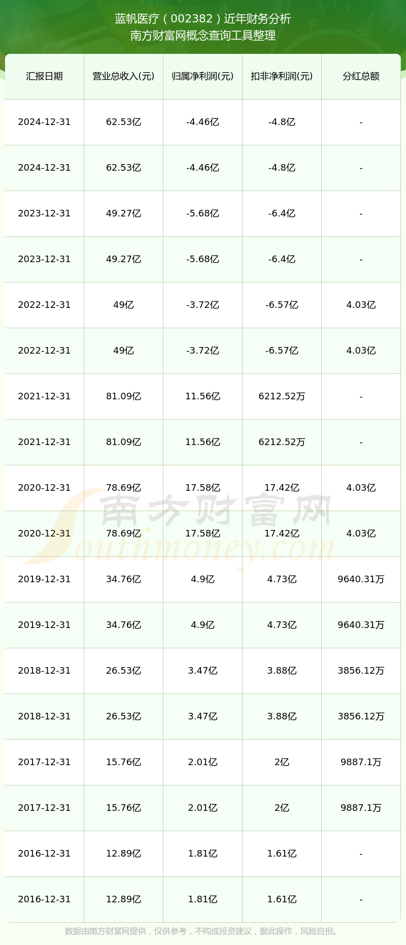 近年藍帆醫(yī)療分紅派息情況如下表所示: