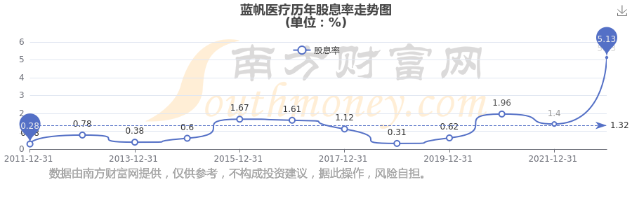 藍帆醫(yī)療歷年股息率走勢如下圖: