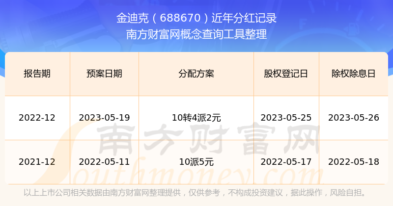 金迪克最新一次公布的分紅方案:10轉(zhuǎn)4派2元。