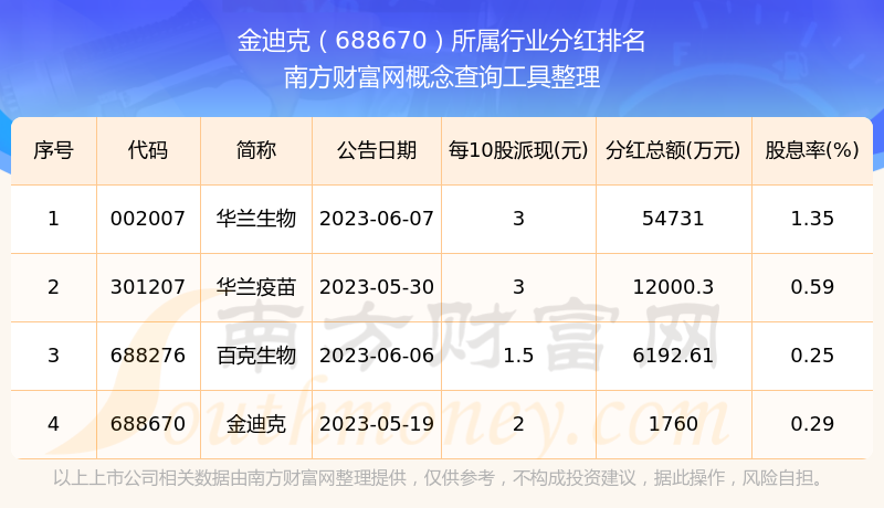 按照南方財(cái)富網(wǎng)趨勢(shì)選股系統(tǒng)統(tǒng)計(jì),金迪克所屬行業(yè)為流感疫苗行業(yè),流感疫苗行業(yè)分紅排名情況如下表: