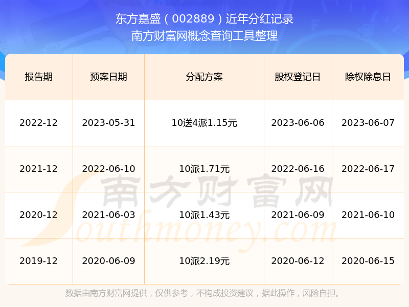 東方嘉盛最新一次公布的分紅方案:10送4派1.15元。