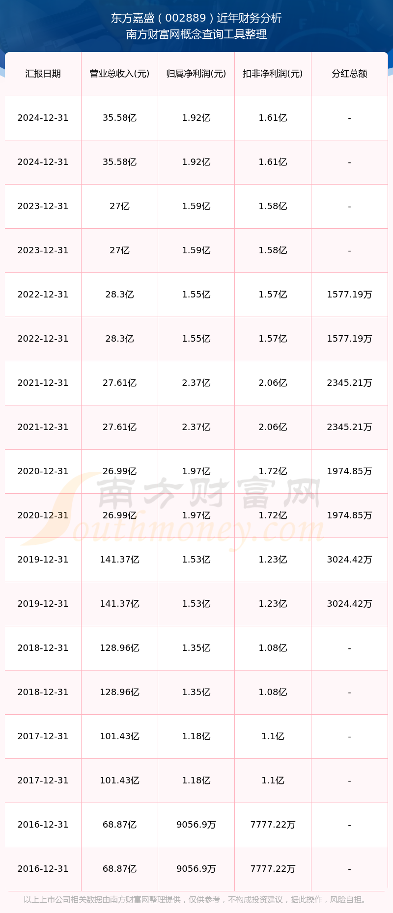 2024年東方嘉盛總營收35.58億,同比增長31.79%;凈利潤1.92億,同比增長20.5%;銷售毛利率11.18%。