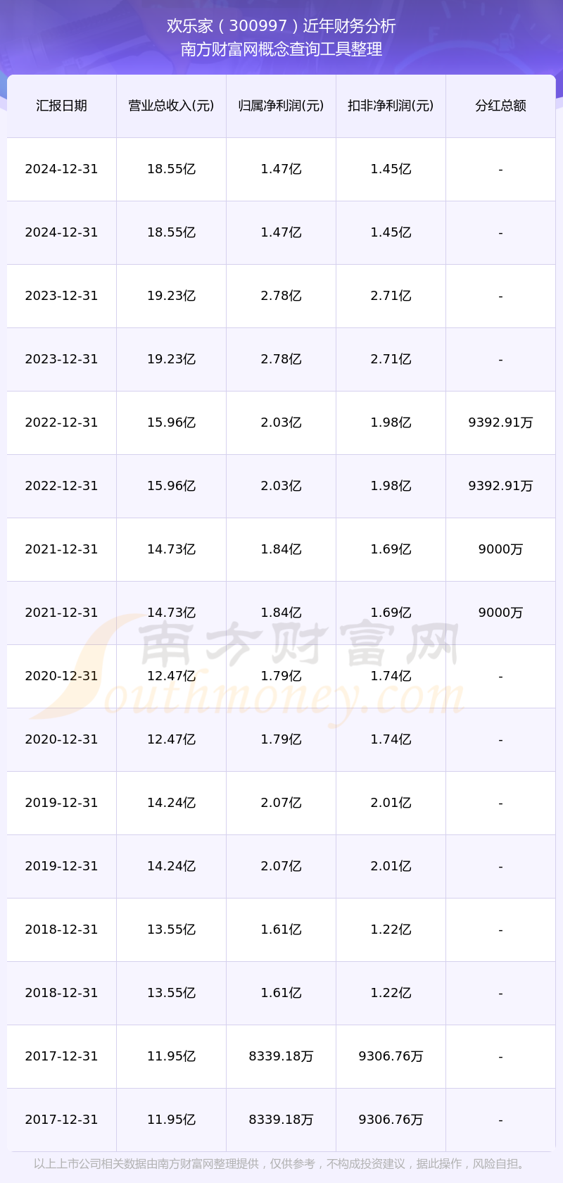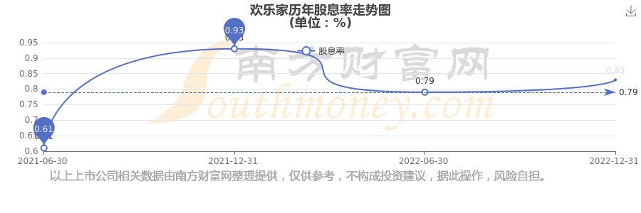 歡樂家最新一次公布的分紅方案為10派1.2元。本次權(quán)益分派股權(quán)登記日為2023年5月15日,除權(quán)除息日為2023年5月16日,派息日為2023年5月16日。