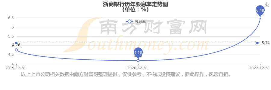 近年浙商銀行年度股息率走勢(shì)如下圖: