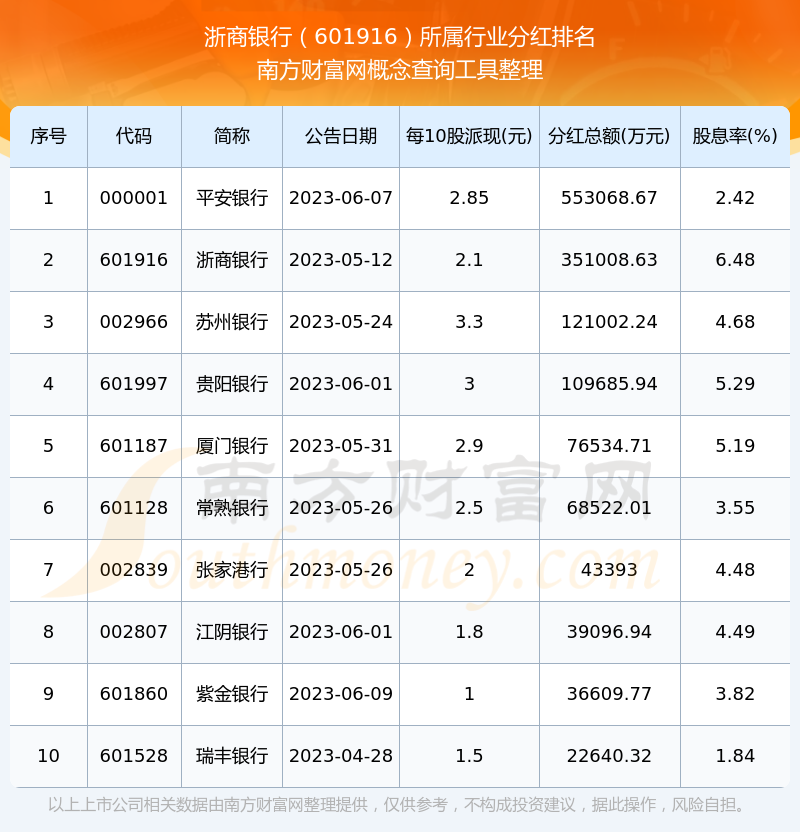 二、浙商銀行601916行業(yè)分紅排名