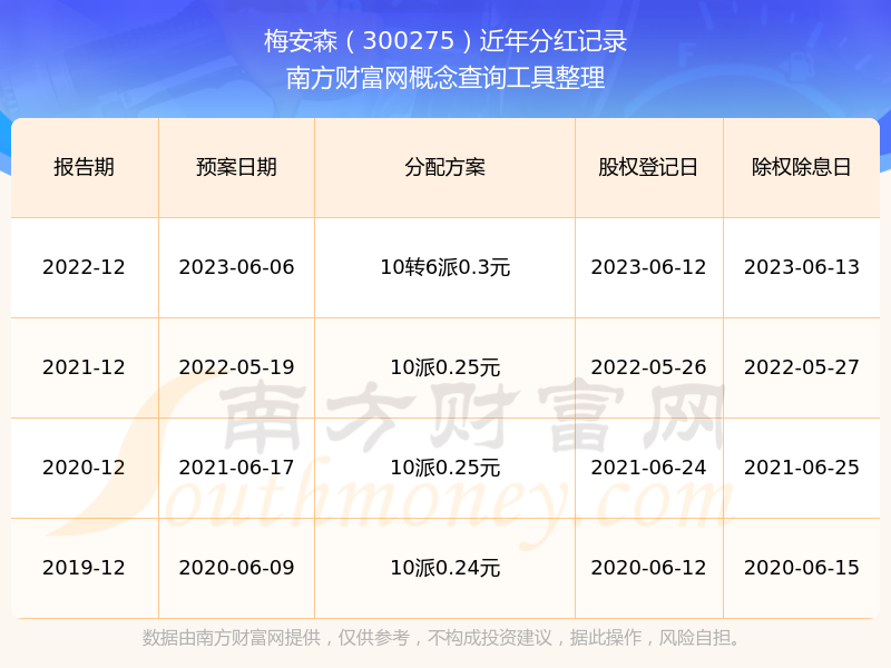 梅安森最新一次公布的分紅方案為10轉(zhuǎn)6派0.3元。本次權(quán)益分派股權(quán)登記日為2023年6月12日,除權(quán)除息日為2023年6月13日,派息日為2023年6月13日。