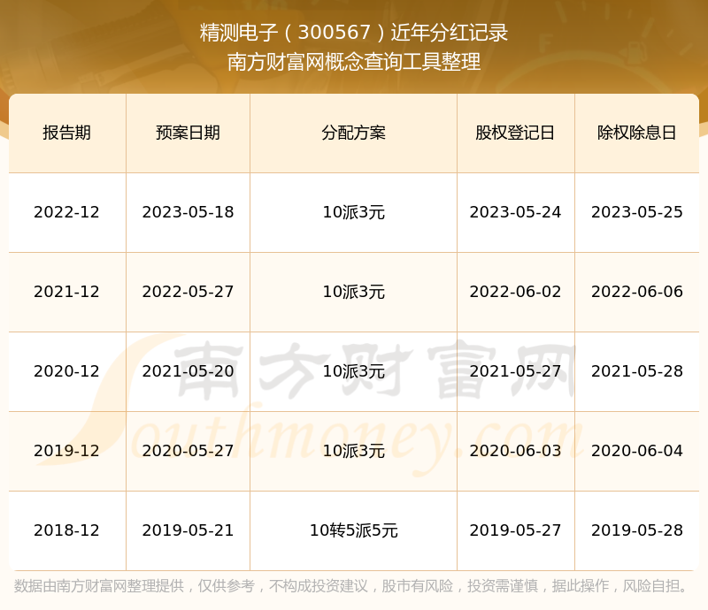 精測(cè)電子最新一次公布的分紅方案:10派3元。