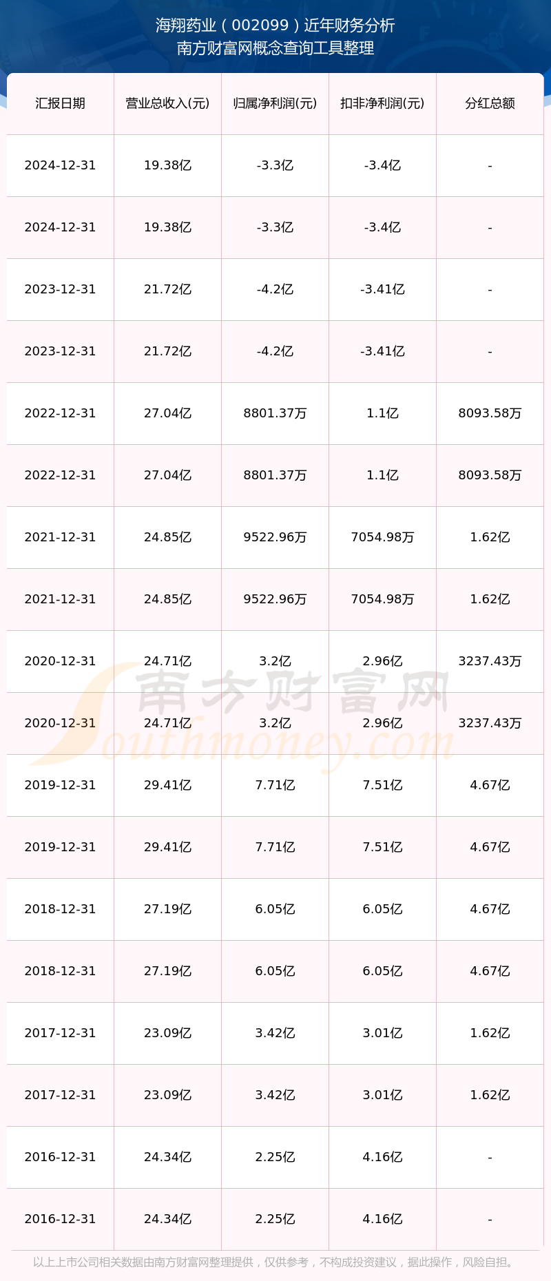 海翔藥業(yè)公司2024年實現(xiàn)營收19.38億元,凈利潤-3.3億元,毛利率26.74%。