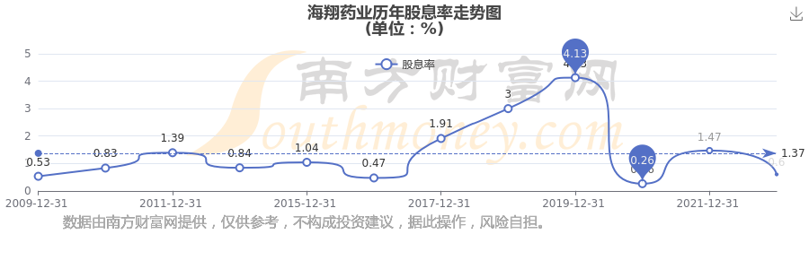 海翔藥業(yè)歷年股息率走勢如下圖:
