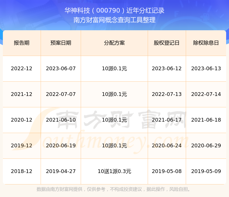 近年華神科技分紅派息情況如下表所示: