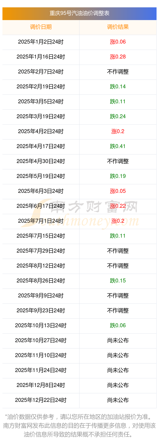 2025年重慶最新汽油價格調(diào)整一覽表