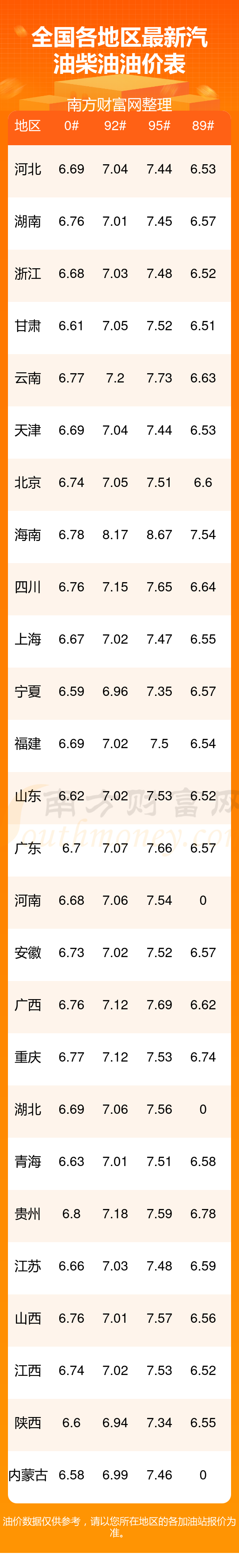 2025年10月26日全國油價調(diào)整及最新汽油價格表