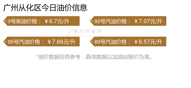 廣州從化區(qū)汽油、柴油10月26日每升的價(jià)格為(油價(jià)調(diào)整時(shí)間是10月14日):92號汽油7.07元;95號汽油7.66元;89號汽油6.57元;0號柴油6.7元。