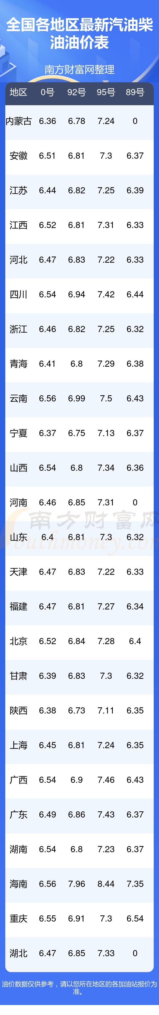 油價數(shù)據(jù)僅供參考,請以您所在地區(qū)的各加油站報價為準。
