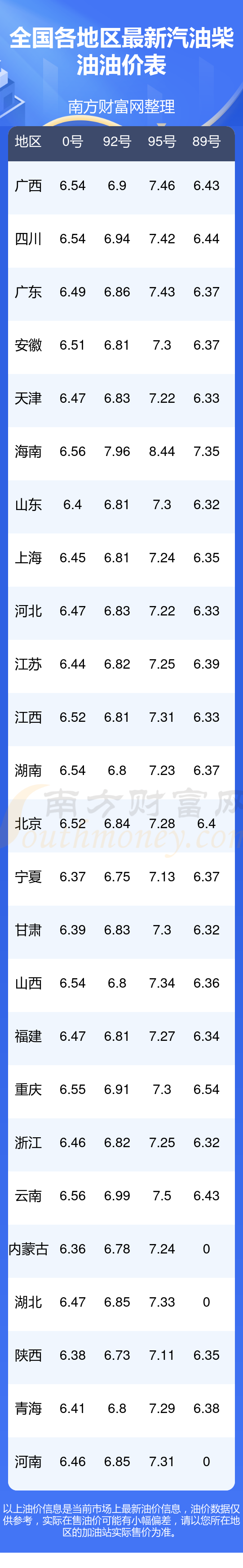本站提供的油價數據僅供參考,具體數據以加油站報價為準。