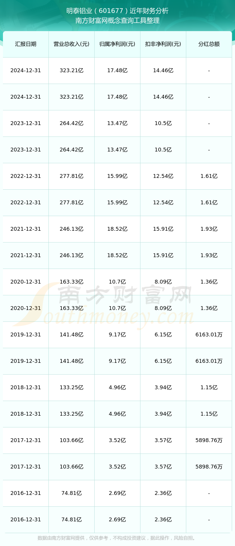 近年明泰鋁業(yè)分紅派息情況如下表所示: