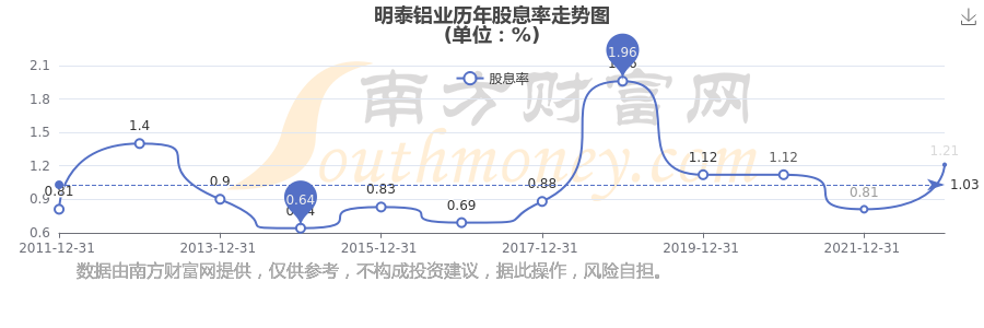 明泰鋁業(yè)歷年股息率走勢如下圖: