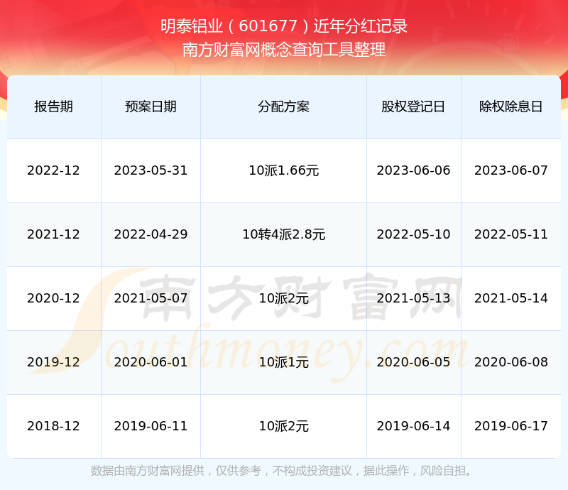 一、明泰鋁業(yè)(601677)股票分紅記錄