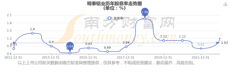 近年明泰鋁業(yè)年度股息率走勢如下圖: