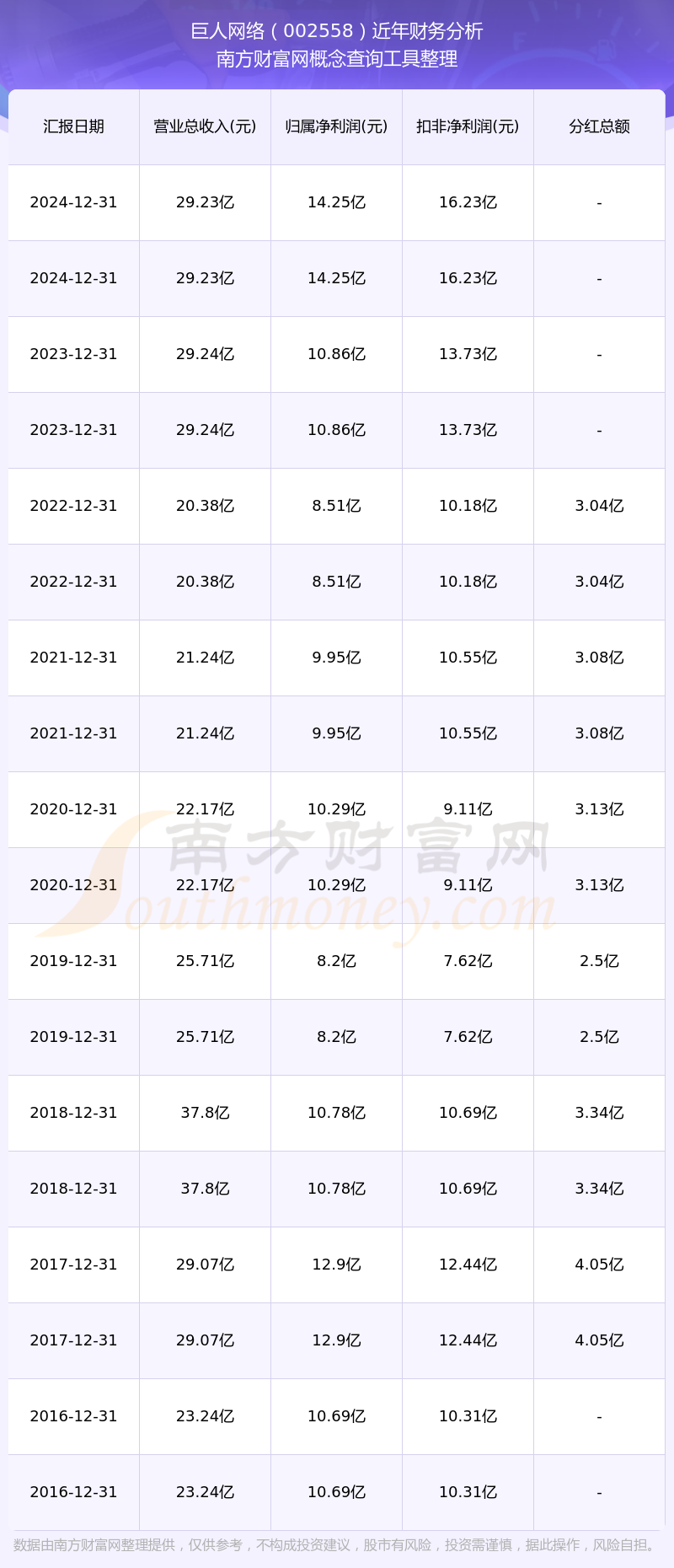 近年巨人網(wǎng)絡(luò)分紅派息情況如下表所示: