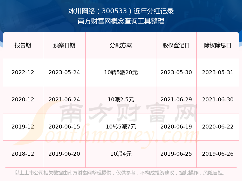 近年冰川網(wǎng)絡(luò)分紅情況如下表所示: