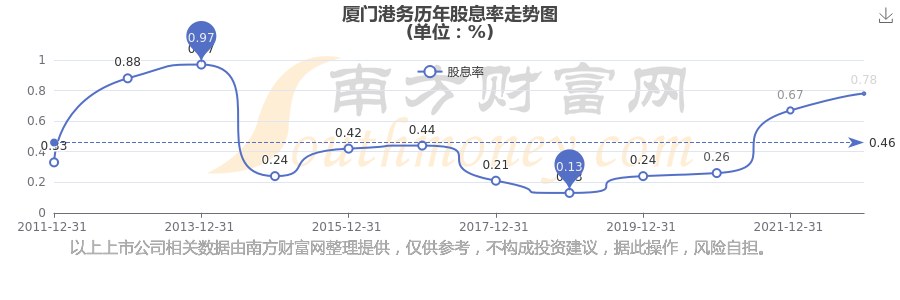 廈門港務(wù)歷年股息率走勢(shì)如下圖: