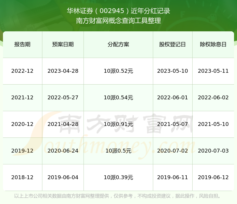 一、華林證券(002945)股票分紅記錄