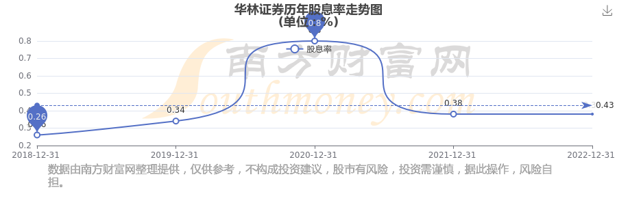 近年華林證券年度股息率走勢(shì)如下圖: