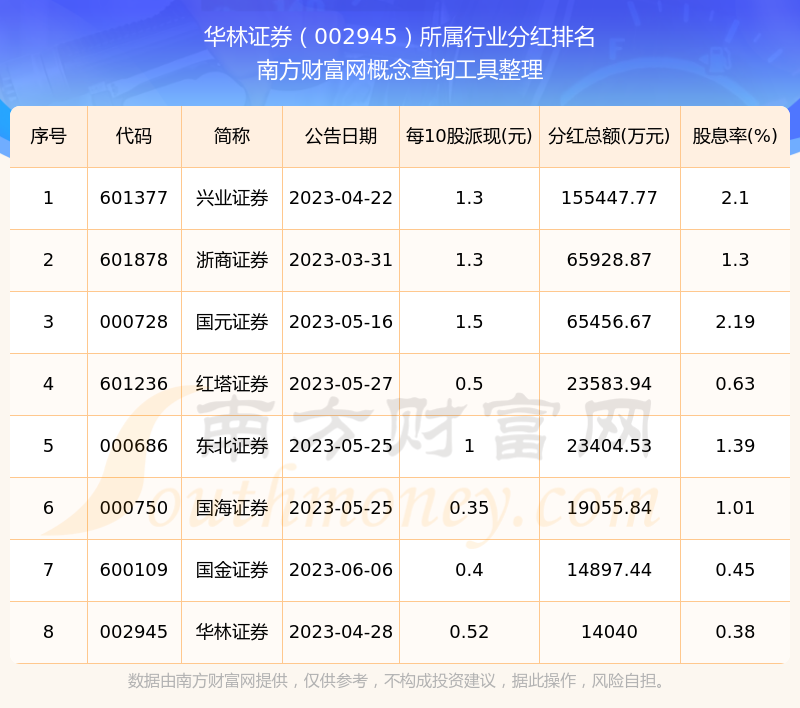 二、華林證券002945行業(yè)分紅排名