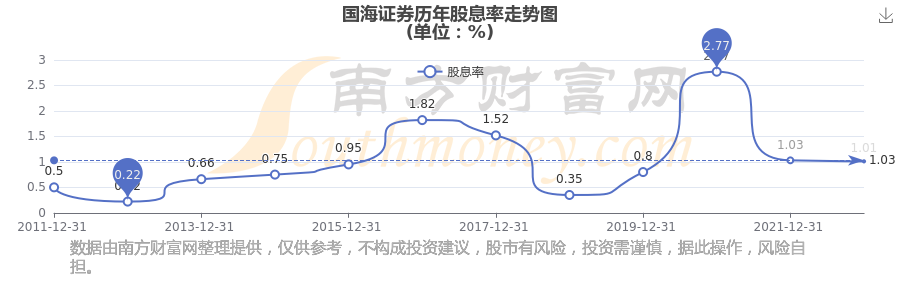 國(guó)海證券歷年股息率走勢(shì)如下圖:
