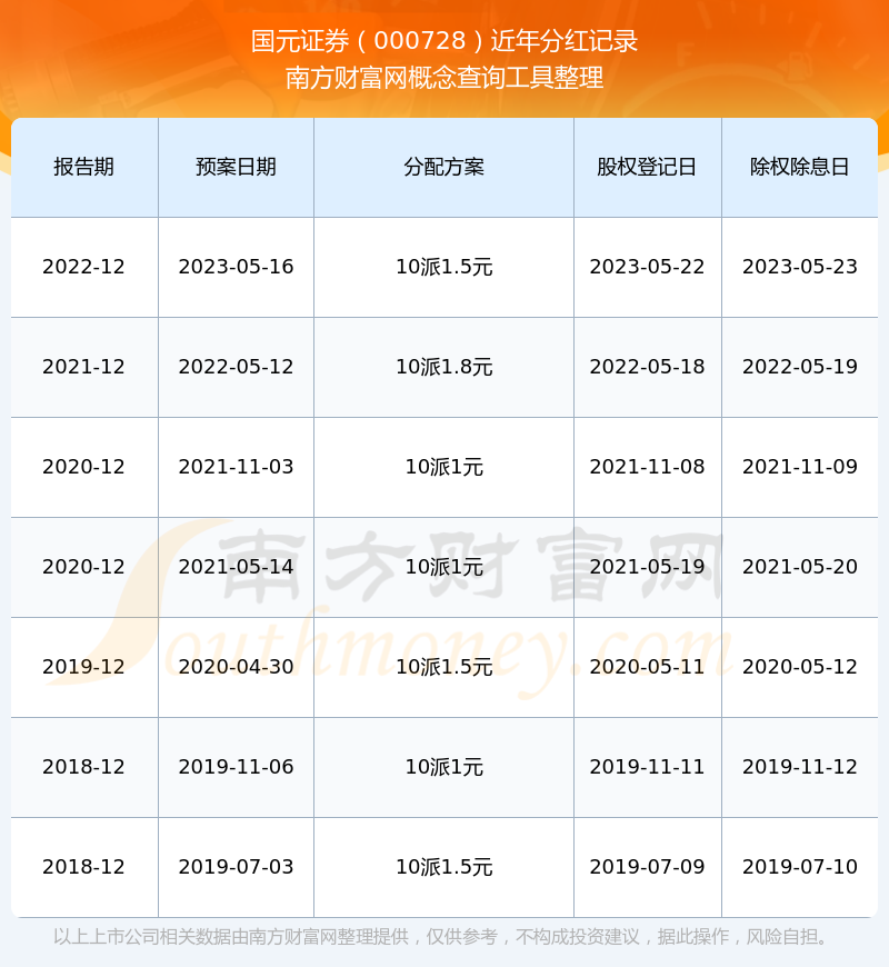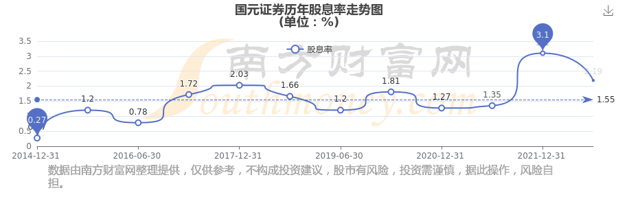 國元證券最新一次公布的分紅方案:10派1.5元。