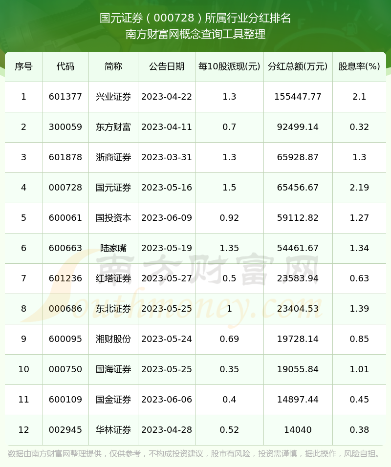按照南方財(cái)富網(wǎng)趨勢(shì)選股系統(tǒng)統(tǒng)計(jì),國元證券所屬行業(yè)為證券行業(yè),證券行業(yè)分紅排名情況如下表: